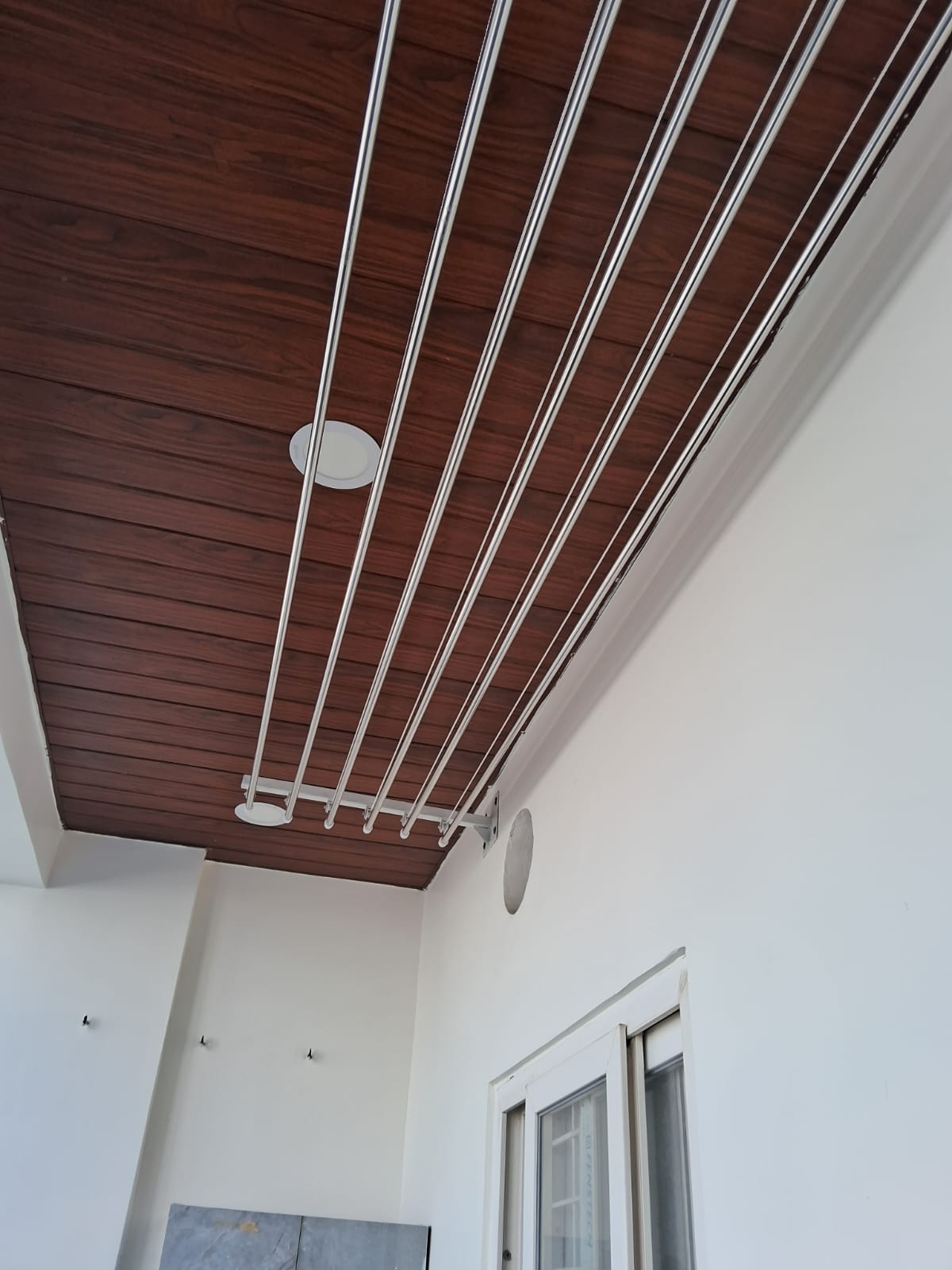 Ceiling cloth hangers are installed indoors to maximize drying space. They use a pulley system for easy lifting and lowering of clothes. These systems are strong, rust-resistant, and long-lasting.