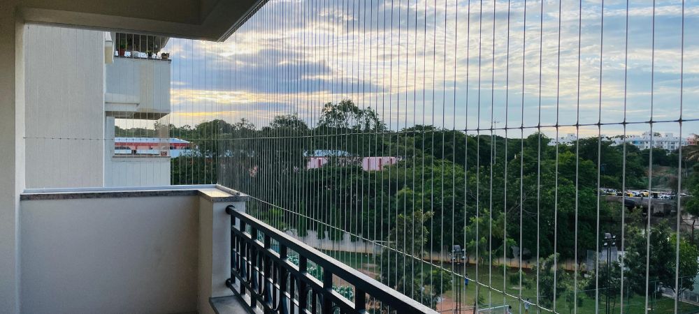 Balcony invisible grills provide safety without blocking your outside view. They are made from strong stainless steel wires that ensure durability and protection. These grills are ideal for modern apartments and high-rise buildings.