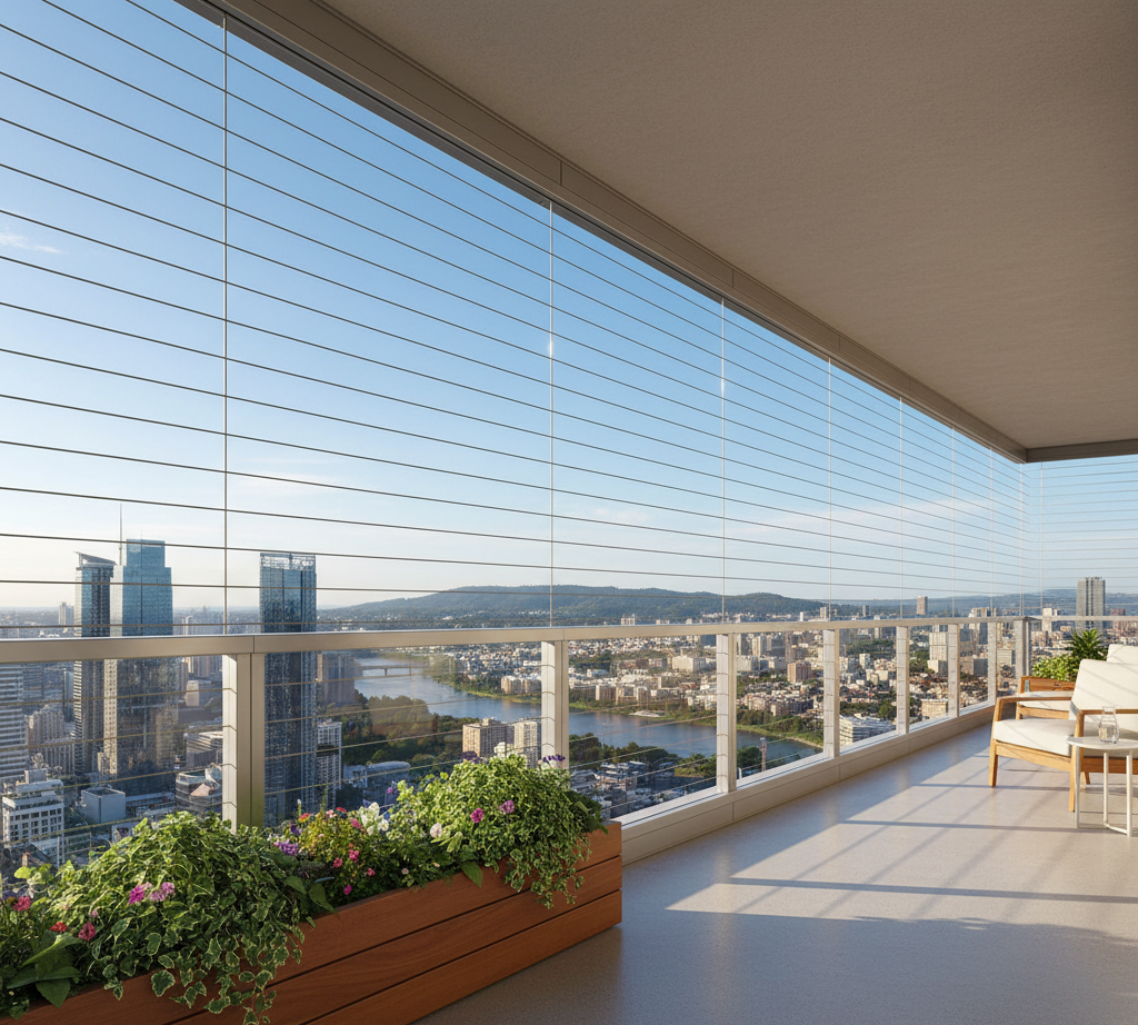 Balcony invisible grills provide safety without blocking your outside view. They are made from strong stainless steel wires that ensure durability and protection. These grills are ideal for modern apartments and high-rise buildings.